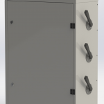 Внутри щита расположены клеммные блоки для подключения его к сети, стабилизаторам и потребителю. На боковой стенке щита расположены ручные рубильники байпаса, индикаторы наличия входного напряжения, а также трехпозиционный переключатель для выбора фазы питания контактора нагрузки. Щит можно навесить на стену.